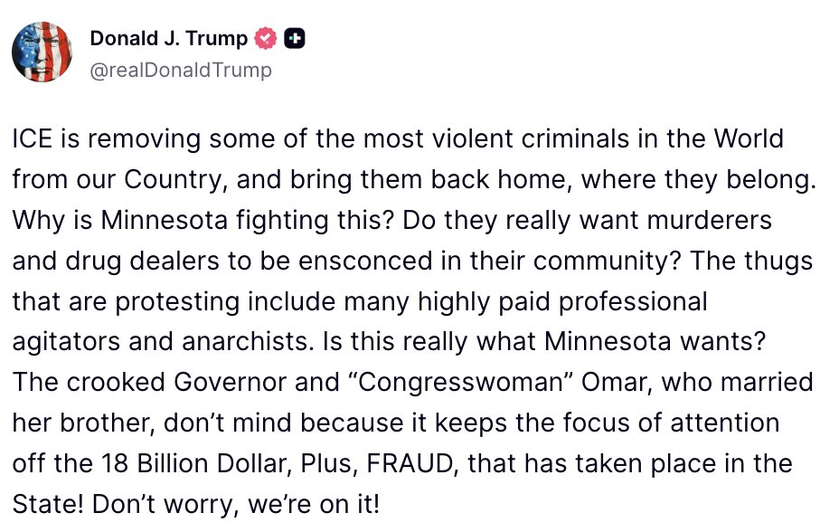🚨 POTUS assures Americans he and his administration are tackling the fraud and illegal immigration in Minnesota!