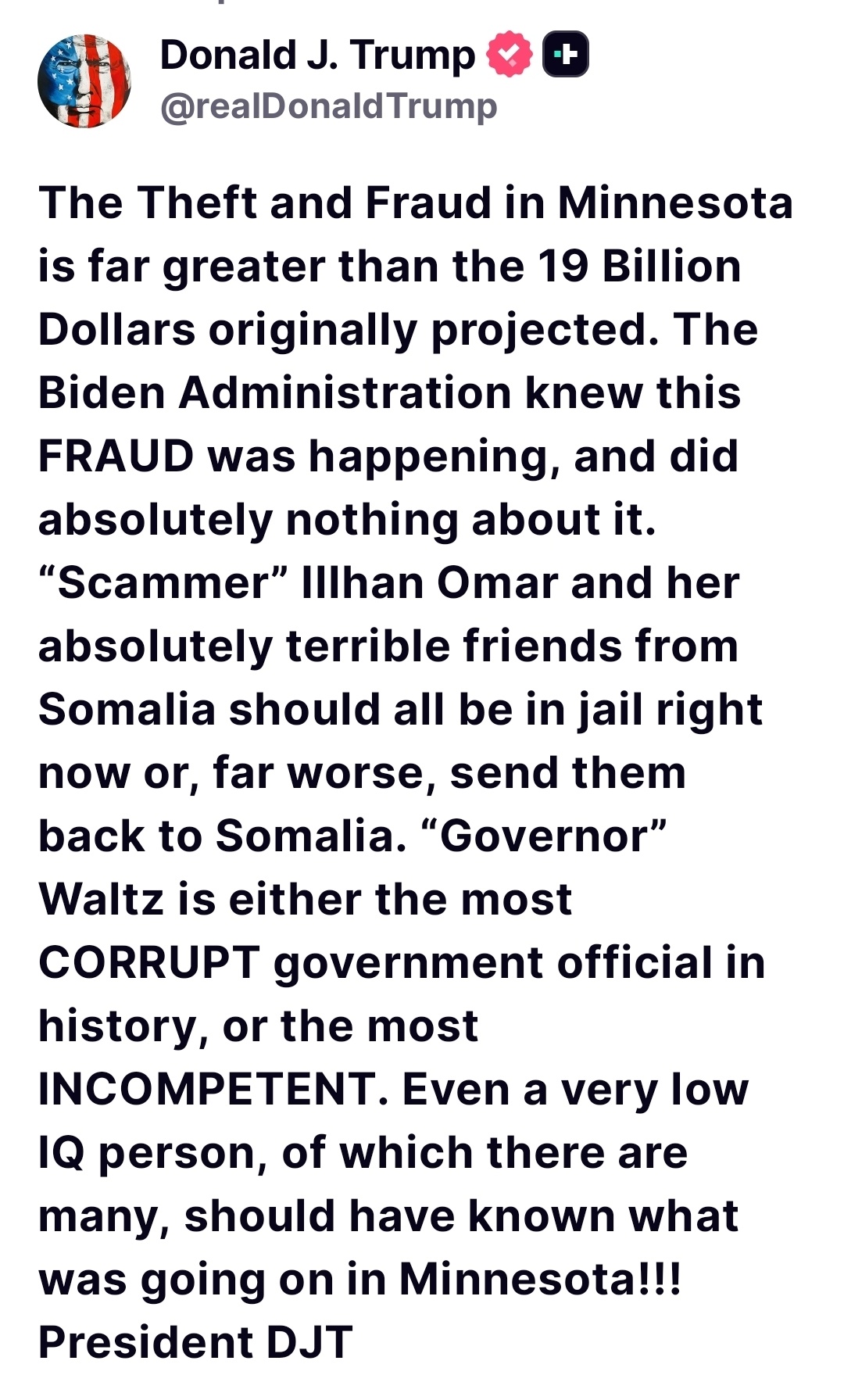 🔥"Governor Walz is either the most CORRUPT government official in history, or the most INCOMPETENT." -POTUS💥