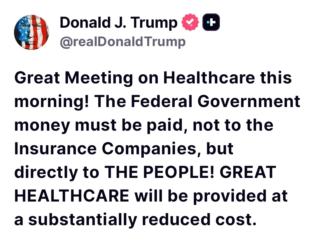 🚨President Trump says he wants to provide “GREAT HEALTHCARE” to all American citizens.🇺🇲